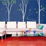 Three Large Trees and Green Leaves Wall Decal Sticker Living Room Stickers Vinyl Removable Gray Trunk Green Leaves